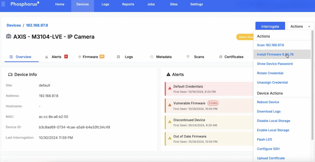Phosphorus Unified xIoT Security Management Platform to bezagentowe rozwiązanie do zarządzania bezpieczeństwem urządzeń IoT, OT, IoMT, IIoT. Łączy wykrywanie zasobów, ich analizę i ocenę pod kątem bezpieczeństwa, usuwanie podatności i ciągły monitoring w jednym narzędziu – co czyni je niezwykle efektywnym, skalowalnym i rozpoznawalnym w branży. Jest to produkt amerykańskiej firmy obecny na rynku od 2017 roku.